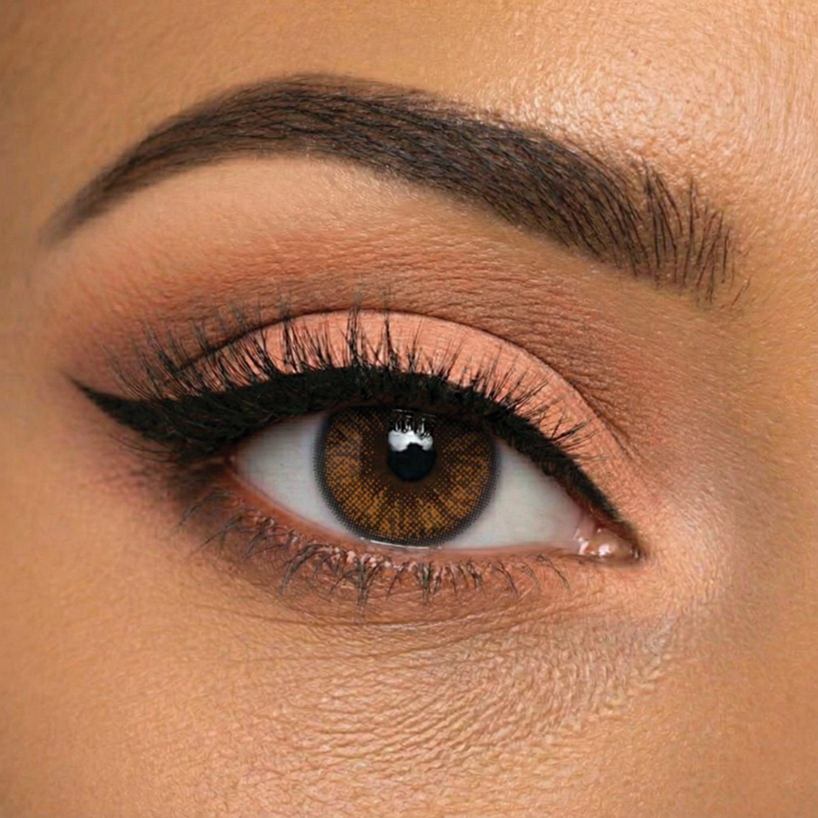 While Jewel Brown contact lenses lighten your eye color with a strongly pigmented brown color, the darker outline of the iris print compliments your eye makeup, and attracts attention towards the eyes.