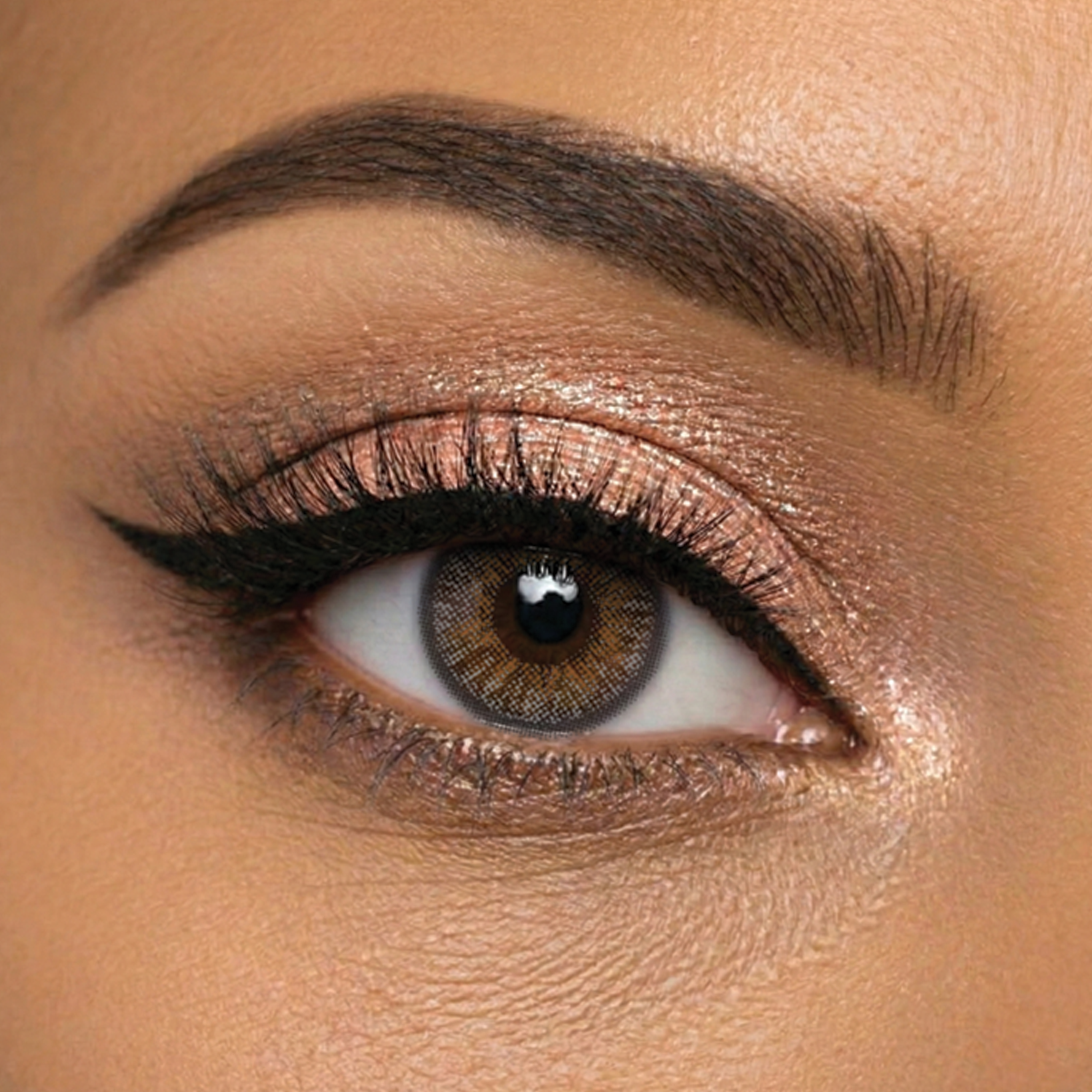 Rainbow Gray colored contact lenses feature a bold iris print with a golden sunburst pattern spreading from the pupil on the gray iris. This iris print is perfect if you want to make a statement. This particular contact lens goes especially well with winterwear.